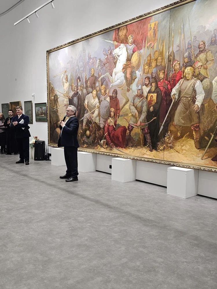 На холсте, подобно мощному потоку, движется лавина ратников, увлекая нас за собой, течёт река исторических событий, погружая зрителя в те далёкие времена. Мы всматриваемся в эти лица, в которых отражены время, жизнь и судьба. Но неумолимый ход времени стирает из памяти их имена, делая частью «коллективного» прошлого.