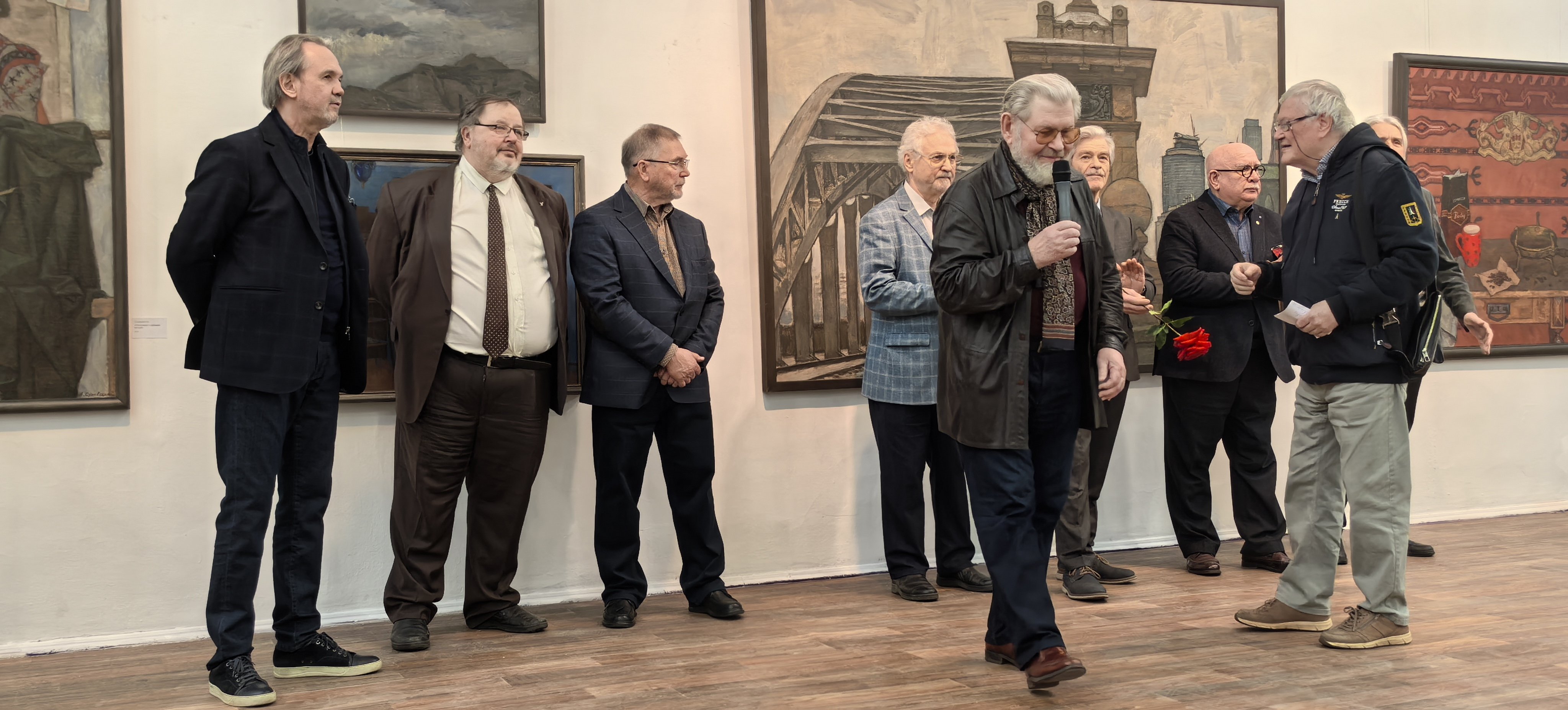 Приветствуя гостей, художник Алексей Суховецкий рассказал, что за годы творческой деятельности участники выставки неоднократно представляли свои произведения в зале на Кузнецком. По его мнению, он имеет значение не только для членов Московского союза художников, но и для отечественного искусства в целом, отражая дух времени и культурный контекст страны.
