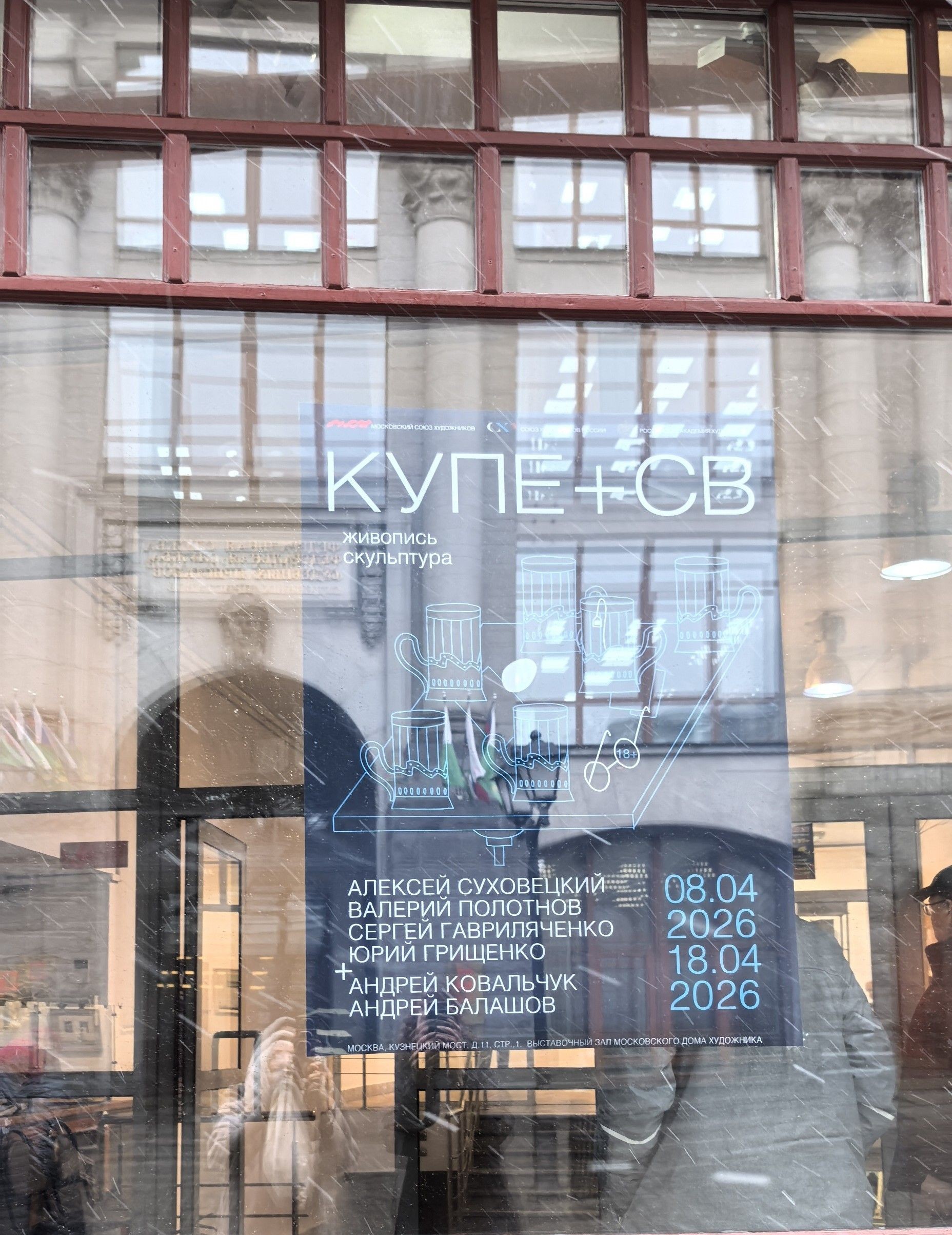Выставочный проект «Купе+CВ» ведущих московских живописцев и скульпторов Алексея Суховецкого, Сергея Гавриляченко, Валерия Полотнова, Юрия Грищенко, Андрея Ковальчука и Андрея Балашова открылся в Московском Доме художника на ул. Кузнецкий Мост, 11