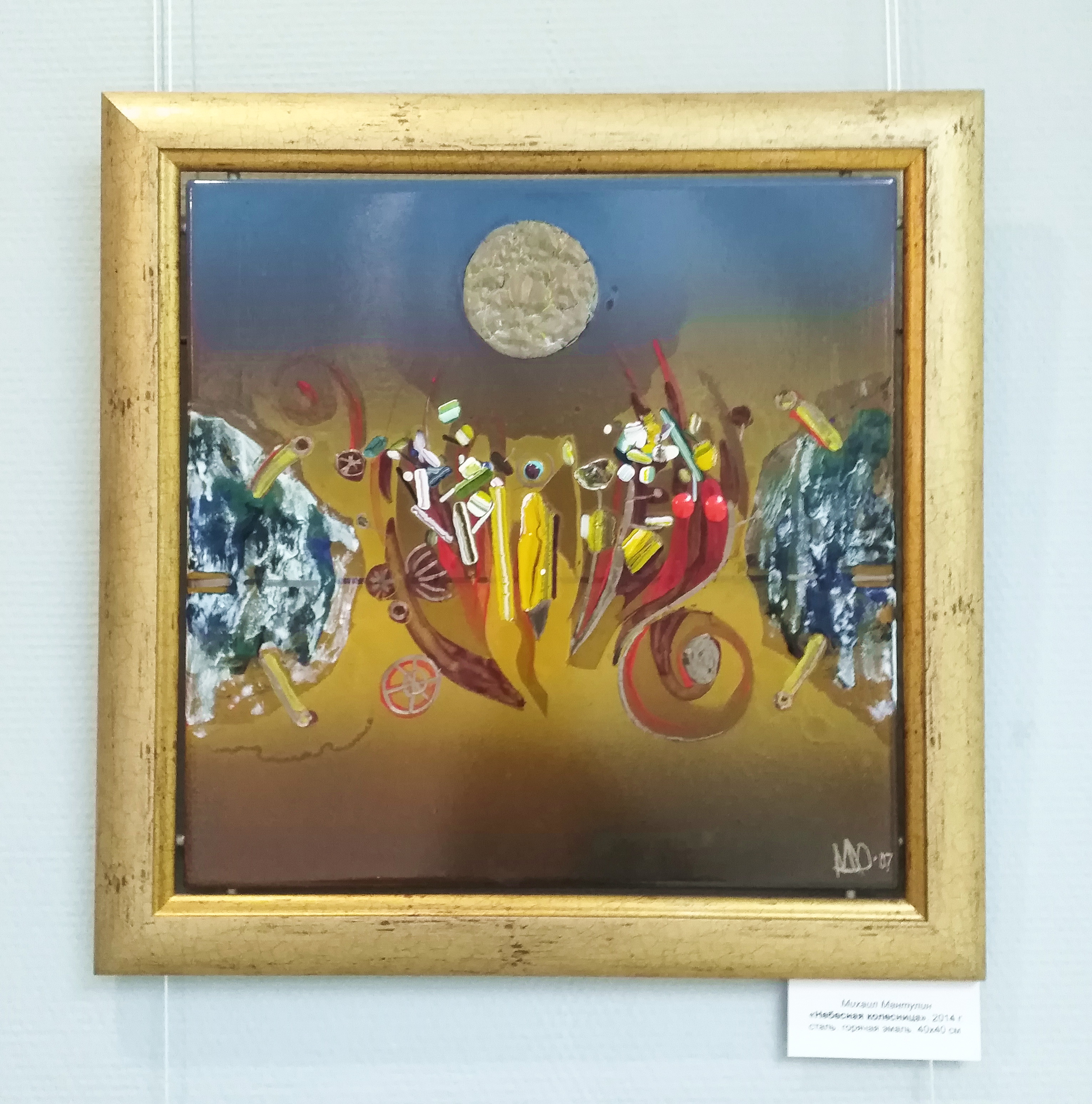 На выставке представлено около пятидесяти работ разных периодов творчества мастера, среди них ‒ эскизы реализованных в Калуге и городах Подмосковья средовых проектов, живописные полотна, объемные композиции, дополненные красками и материальными структурами, выполненные в технике ассамбляж, экспериментальные пробы с использованием технологически трудоемкой горячей эмали.