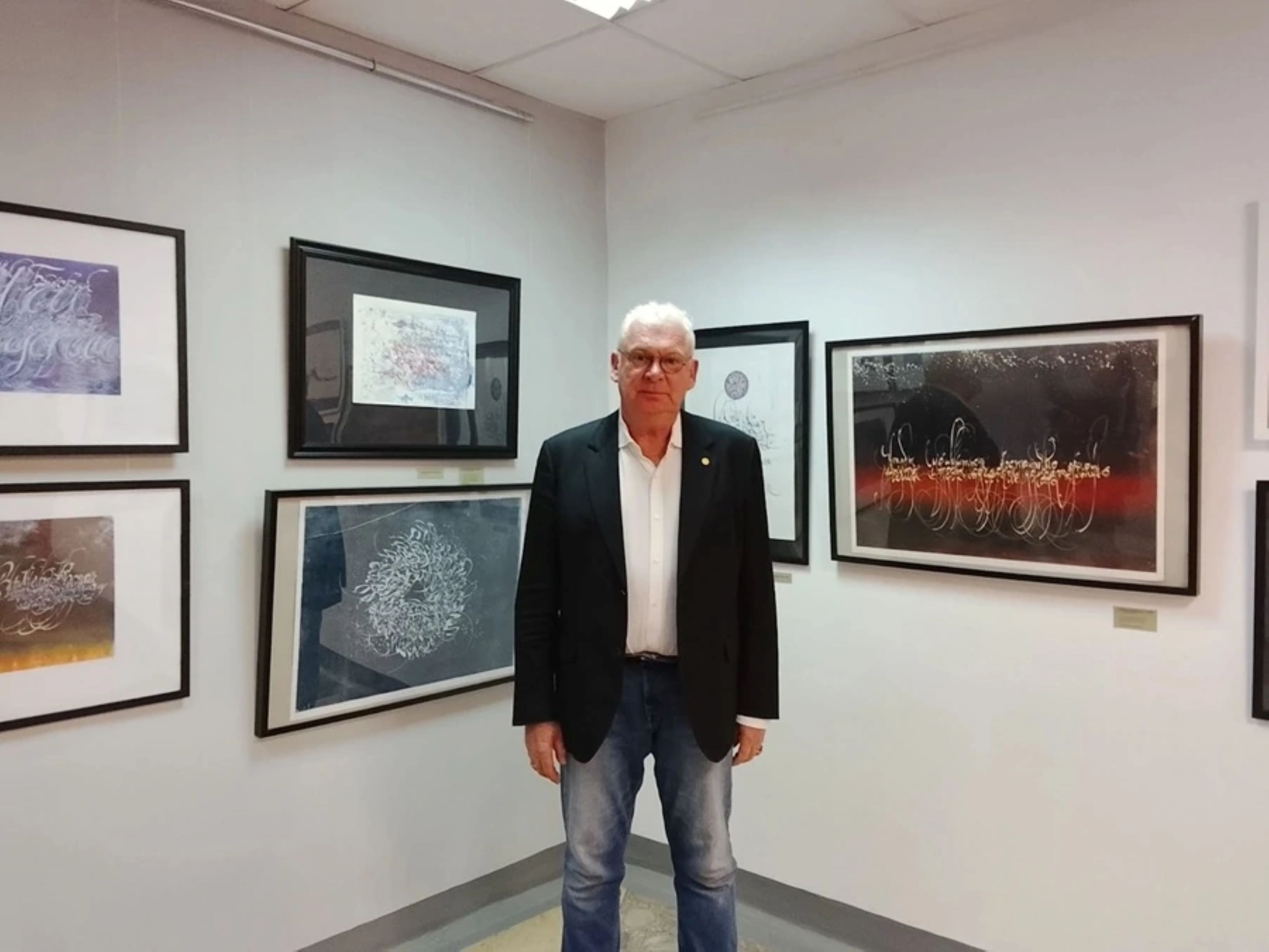 «Когда я готовился к этой выставке, передо мной встала большая проблема: что выбрать? У меня очень разноплановые работы: я пишу и готическим шрифтом, и скорописью, и вязью. Есть работы, выполненные не на бумаге, а на холсте. Я подумал, что если взять по одной-две работы разных стилей, выставка не будет восприниматься цельно. А я стремился к единому стилевому решению», — рассказывает художник (по материалам https://tramplin.media/news/9/7473) .
