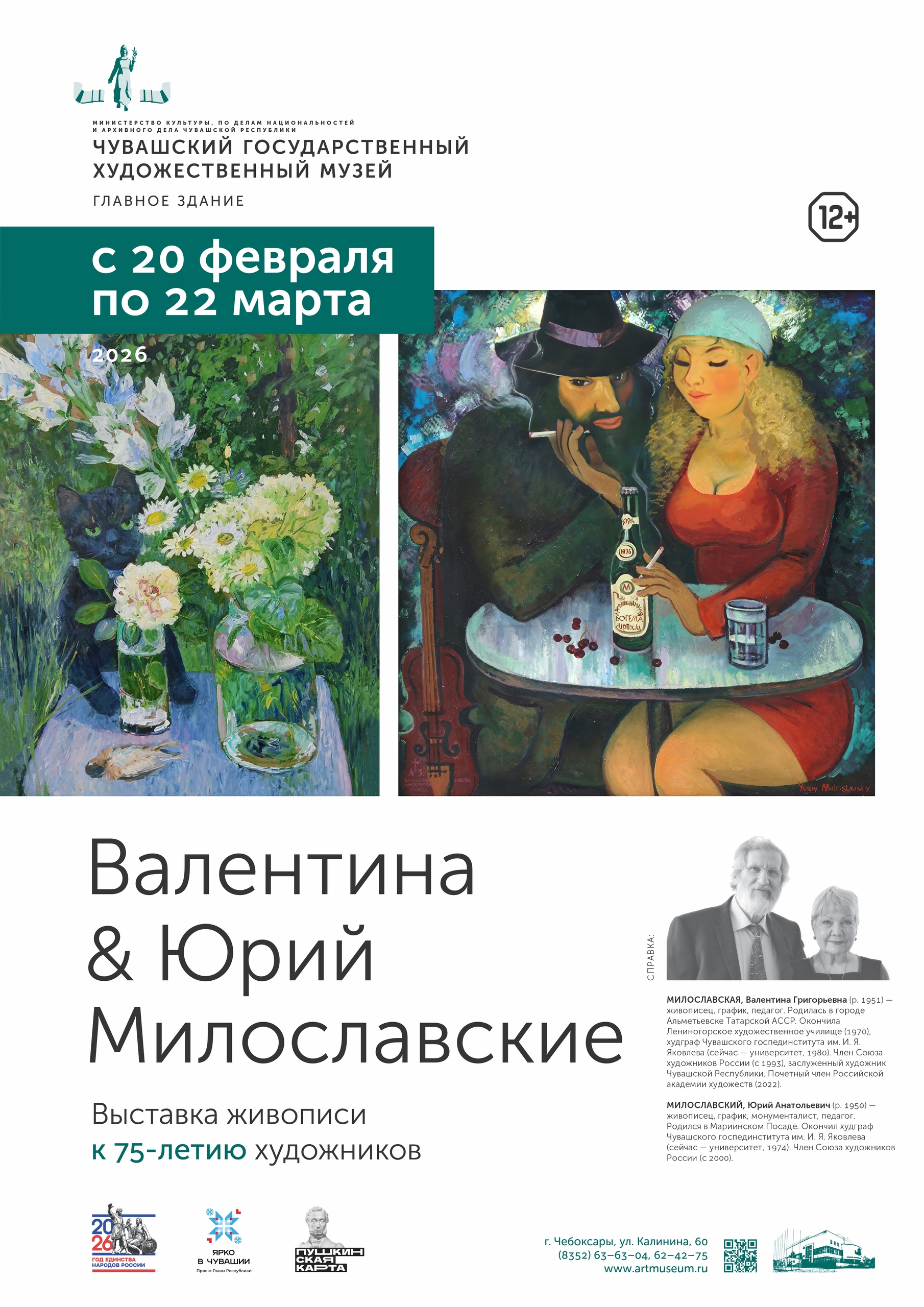 20 февраля в 16 часов в Чувашском государственном художественном музее откроется выставка известных чувашских художников и педагогов Валентины и Юрия Милославских, которые идут по жизни рука об руку уже более полувека.