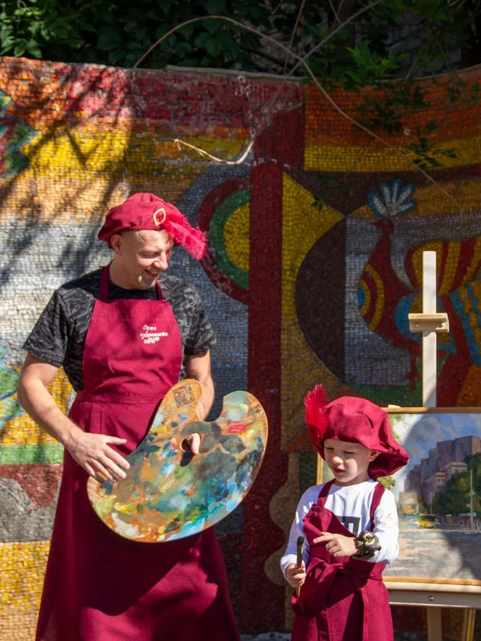 А дружба Союза художников с Луганским академическим театром кукол продолжилась и в рамках этого яркого праздничного дня. Союзу художников, наконец, удалось провести первый совместный проект! Своим искусством театр порадовал луганчан на импровизированном «Арбате».