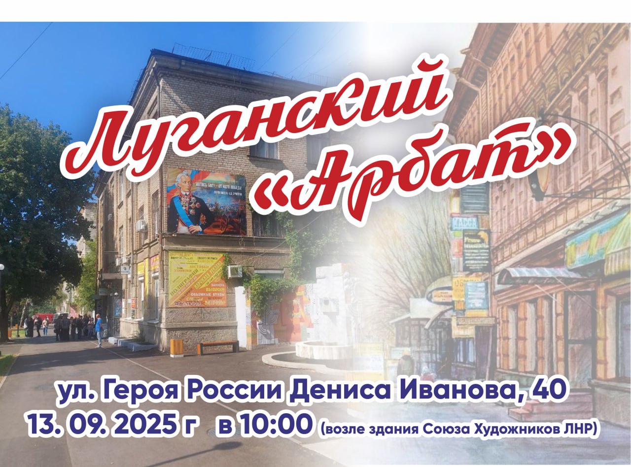 Региональное отделение ВТОО «Союз художников России» в Луганской Народной Республике к 230-летию основания города Луганска организовали и провели мероприятие: в субботу, 13 сентября, в честь Дня города улица Героя России Дениса Иванова (бывшая Сент-Этьеновская) на несколько часов превратилась в «Луганский Арбат». Здесь царила уникальная творческая атмосфера.