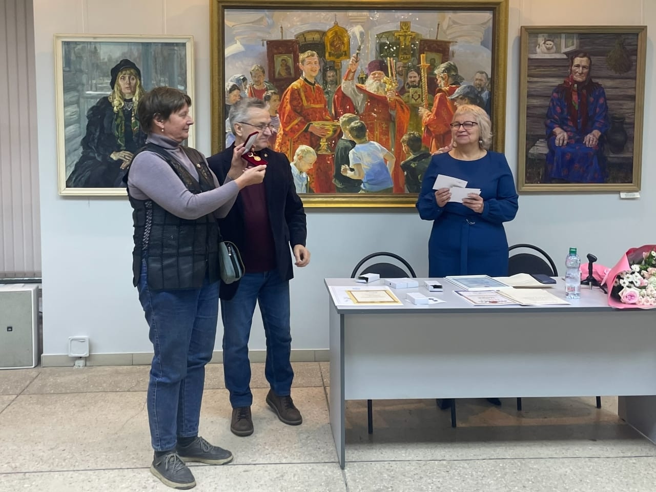 Анатолий Гаврилович Костяников, Секретарь СХР по Центральному Федеральному округу, заслуженный художник РФ, Почётный член РАХ наградил ведущих художников Золотыми и Серебряными медалями, дипломами Союза художников России.