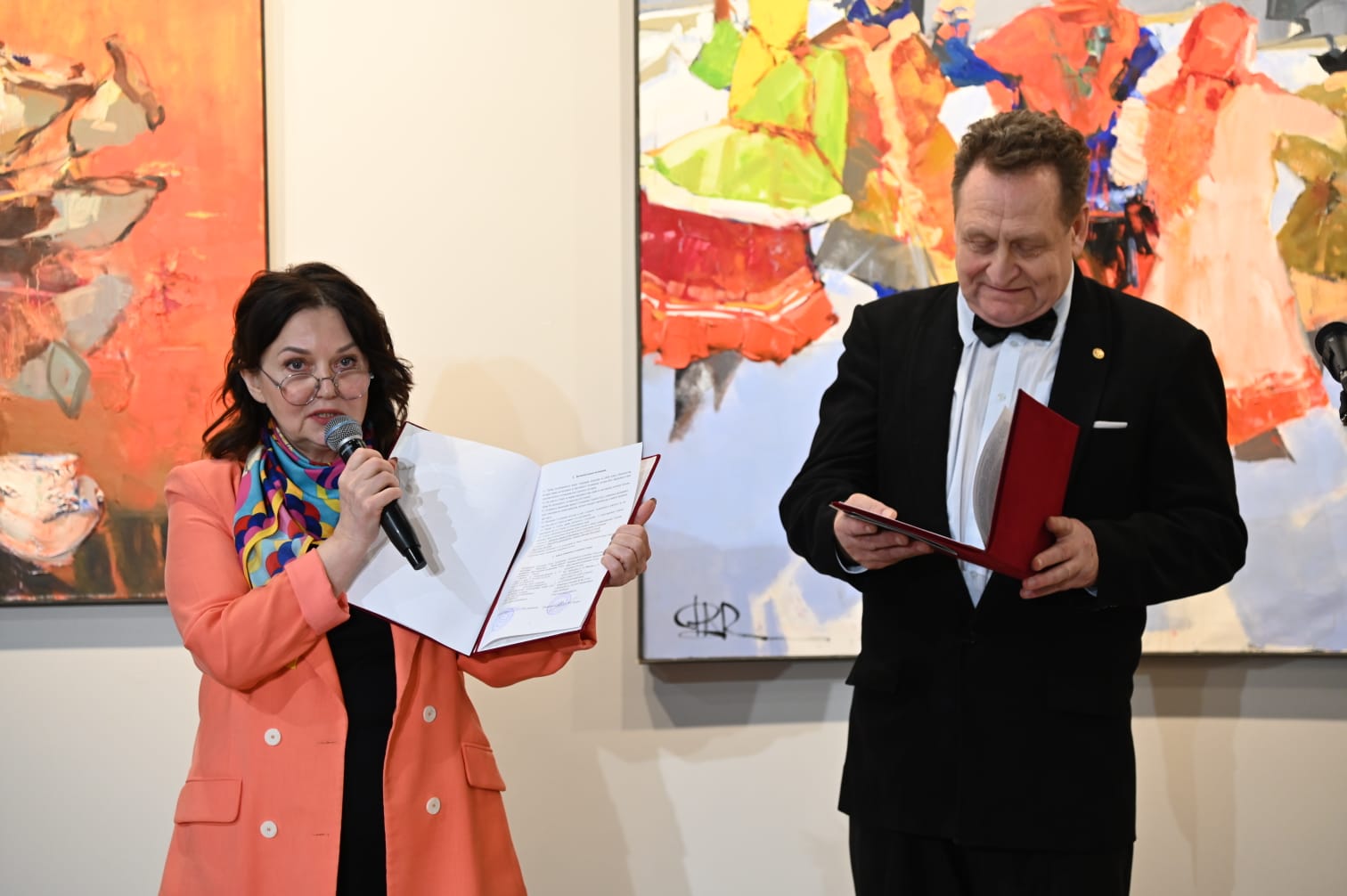 Открытие выставки ознаменовалось еще одним важным моментом ‒ подписанием договора о сотрудничестве Чувашского и Мордовского региональных отделений Союза художников России.