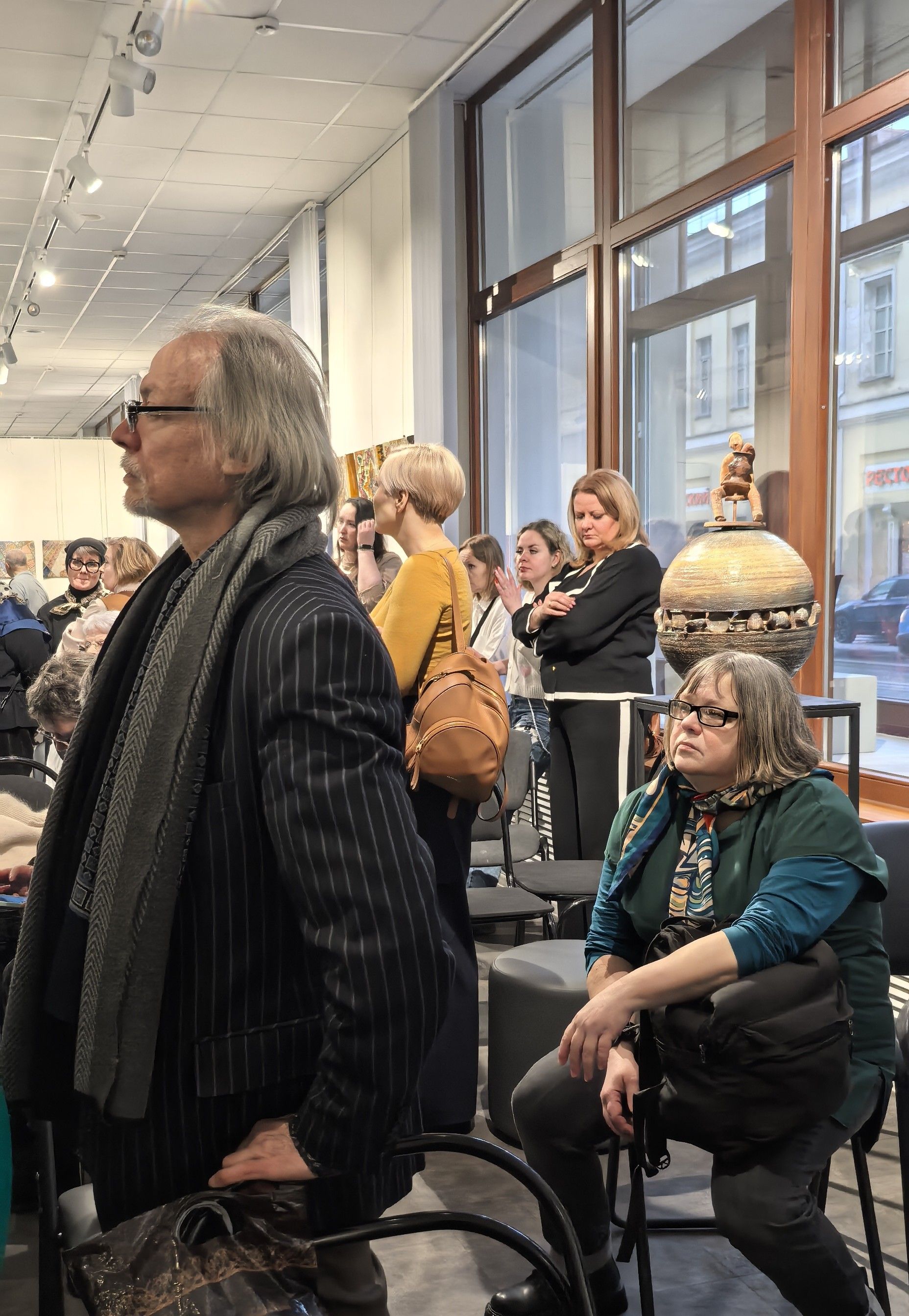 Сергей Гавриляченко ‒ секретарь СХР, народный художник РФ говорил о том, что «пока живы, будем помнить». Он отметил, что глина, материал ‒ всё становилось частью жизни художника: «Я смотрю как зритель, не сильно понимая секреты мастерства, но меня всегда удивляло, что она замечательно чувствовала скульптурную форму и пространство, которое окружает скульптуру. Эти произведения идеально встраиваются в интерьерное пространство ‒ это редкое монументальное чутьё, когда небольшая работа держит вокруг себя большую пространственную среду.