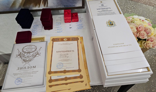 Благодарности губернатора Архангельской области получили Галина Звонкова, Игорь Лапин, Юрий Ломков и Александр Сверчков. Почетными грамотами и благодарностями министерства культуры региона были отмечены еще 14 деятелей изобразительного искусства.