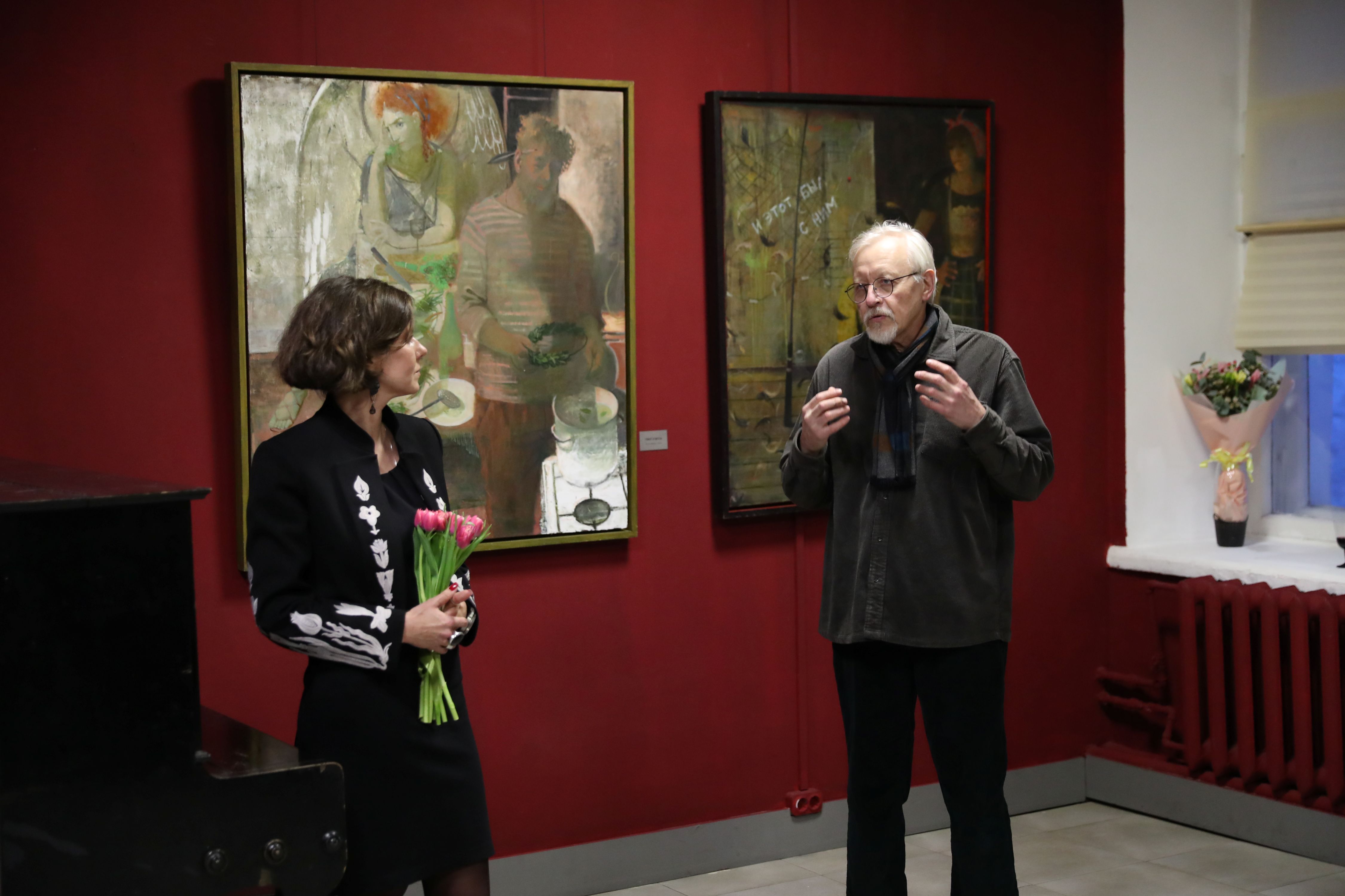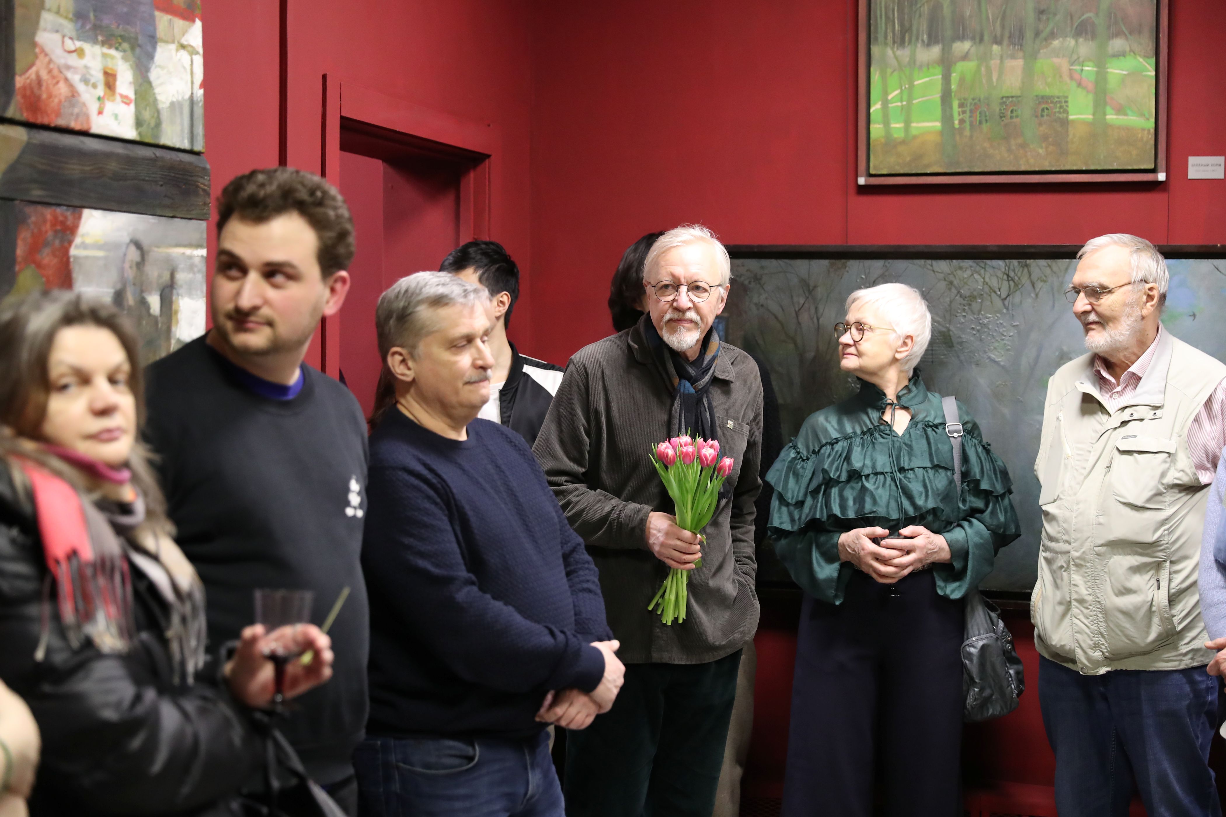 Приветствовали и тепло поздравили автора коллеги и друзья: Смирнова Юлия Александровна ‒ академик РАХ, декан факультета живописи МГАХИ им. В. И. Сурикова; Ремнев Андрей Владимирович ‒ заслуженный художник РФ, академик РАХ; Радюк Дмитрий Сергеевич ‒ член правления секции художников монументалистов МСХ; Самарин Анатолий Алексеевич ‒ секретарь правления секции художников монументалистов МСХ; Юдович Анна ‒ автор концептуальной статьи о выставке.