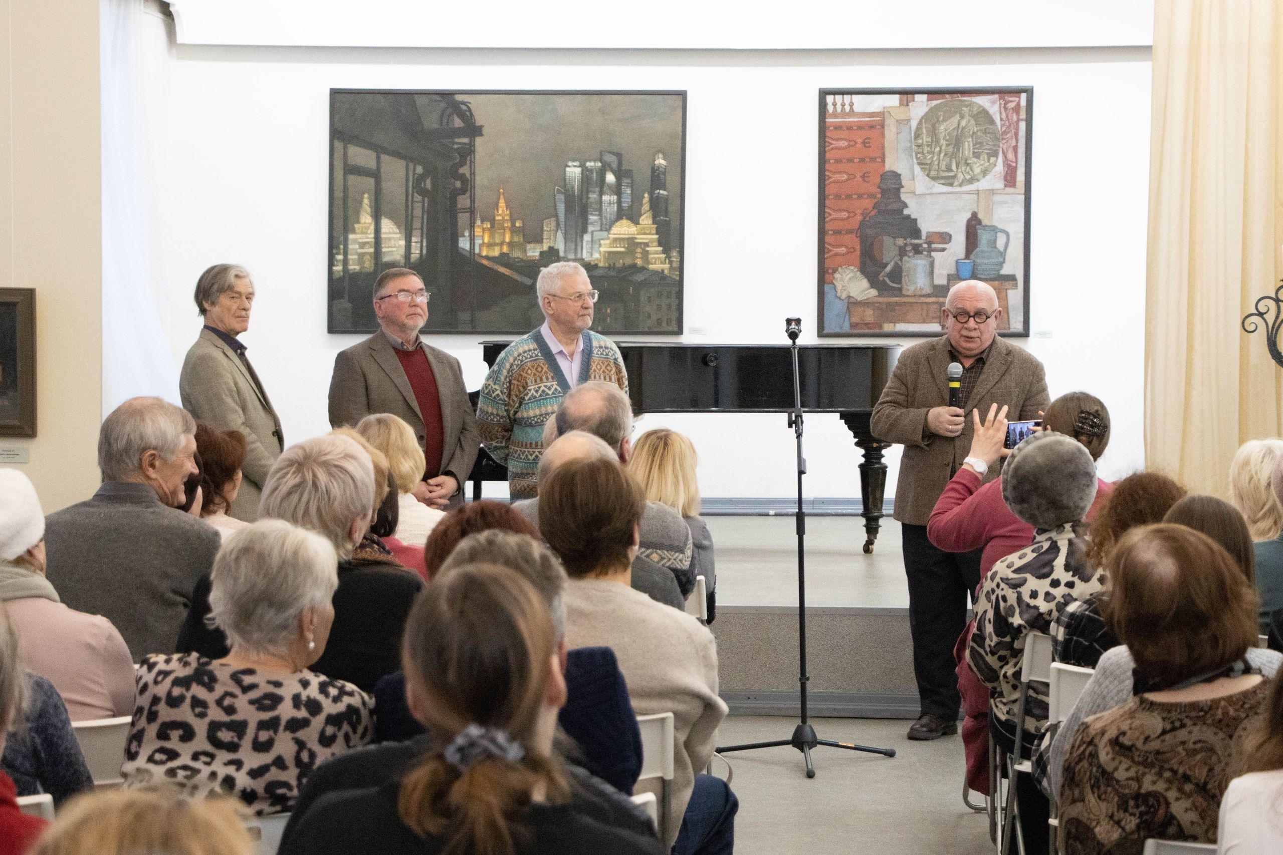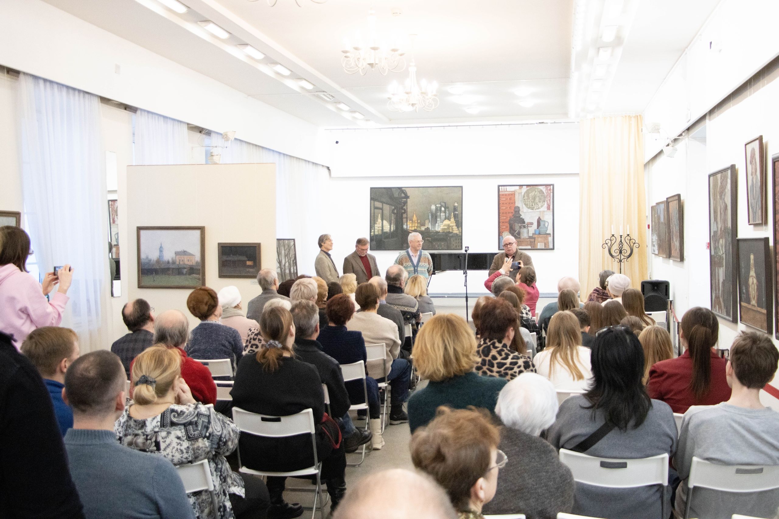 Художников тепло поздравили друзья, коллеги и преданные зрители! Открытие выставки прошло в атмосфере живого общения. Авторы поделились со зрителями праздничными эмоциями, выразили благодарность за поддержку, рассказали о замыслах, стоявших за созданием представленных работ.